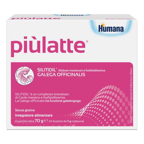 piùlatteDescrizione Integratore alimentare a base di SILITIDIL (silybum marianum e fosfatidilserina) e galega officinalis che costituisce un valido supporto per un allattamento sereno e prolungato, consigliato nelle situazioni in cui può accadere o anche solo sembrare che la produzione del latte materno sia insufficiente. La galega officinalis, il cui nome deriva dal greco "gala" che significa latte, è nota per la sua funzione galattogoga, ovvero favorisce la secrezione del latte materno. Il SILITIDIL è un complesso fitoterapico brevettato che contiene cardo mariano (silybum marianum), pianta nota per le sue proprietà antiossidanti ...
