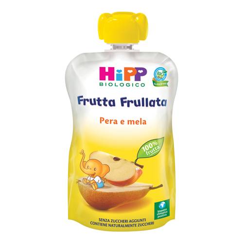 HiPP BIOLOGICO Frutta Frullata Pera e mela Purea di frutta. Alimento per l'infanzia biologico. Dal 6° mese. Senza aggiunta di zucchero. Gli ingredienti contengono naturalmente zuccheri. Ideale come merenda o a fine pasto. Ingredienti 100% frutta (mela* 50%, pera* 50%), antiossidante: acido ascorbico. * da agricoltura biologica Tabella nutrizionale Valori nutrizionali medi per 100 g per 90 g Energia 222 kJ/53 kcal 202 kJ/48 kcal Grassi di cui acidi grassi saturi 0,2 g 0,0 g 0,2 g 0,0 g Carboidrati di cui zuccheri 11,1 g 9,9 g 10,0 g 8,9 g Fibre 2,4 g 2,2 g Proteine 0,4 g 0,4 g Sal...